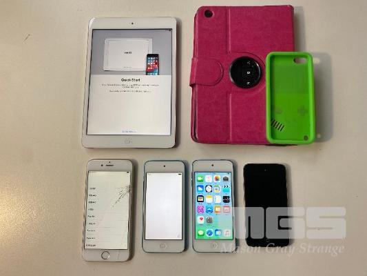 APPLE iPAD MINI 2, APPLE iPHONE 6 (DAMAGED), APPLE iPOD TOUCH ETC (NOTE: ALL LOCKED TO iCLOUD, PARTS ONLY) (NO CABLES, NO CHARGERS)