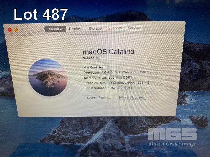 LAPTOP, APPLE MACBOOK AIR (A1466), CORE i5 5250U (5TH GEN) @ 1.6GHz, 4GB DDR3 RAM, 256GB SSD, 13.3" WIDESCREEN (1440x900), INTEL HD VIDEO, Wi-Fi, MAC OS 10.15 INSTALLED & POWER SUPPLY S/N:C1MP7802G941
