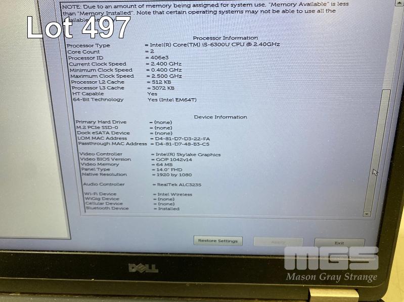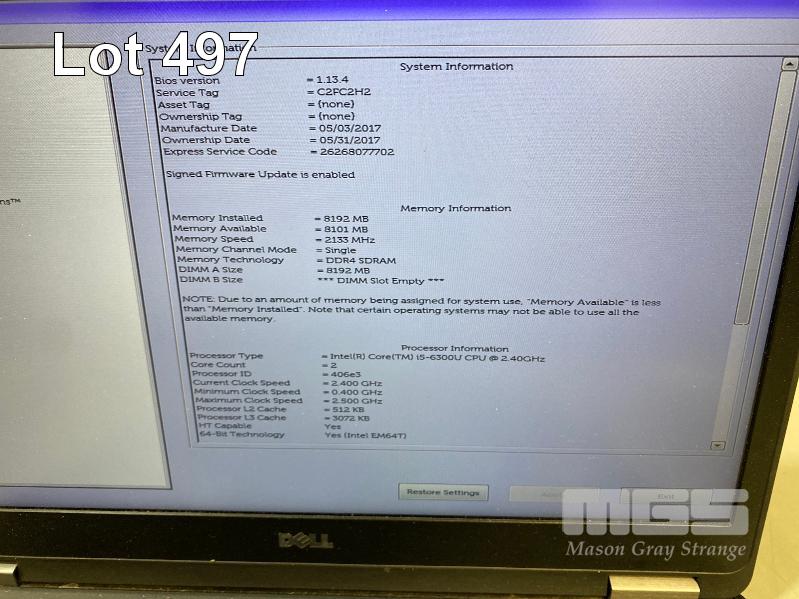 LAPTOP, DELL LATITUDE E7470, CORE i5 6300U (6TH GEN) @ 2.6GHz, 8GB DDR4 RAM, NO HDD, 14" WIDESCREEN (1920x1080), INTEL SKYLAKE GRAPHICS, Wi-Fi, BLUETOOTH & POWER SUPPLY S/N:C2FC2H2