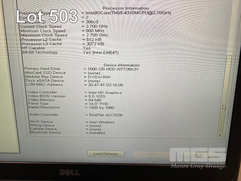 LAPTOP, DELL LATITUDE E6440, CORE i5 4310M (4TH GEN) @ 2.7GHz, 8GB DDR3 RAM, 1TB SATA HDD, DVD-RW, 14" WIDESCREEN (1920x1080), INTEL HD VIDEO, Wi-Fi, BLUETOOTH, WINDOWS 10 PRO INSTALLED, DOCKING STATION & POWER SUPPLY (NOTE: BATTERY NOT CHARGING) S/N:GCBB162