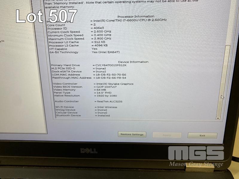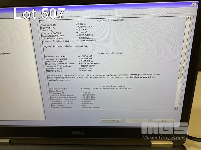 LAPTOP, DELL LATITUDE E7470, CORE i7 6600U (6TH GEN) @ 2.6GHz, 16GB DDR4 RAM, 512GB SSD, 14" WIDESCREEN (1920x1080), INTEL SKYLAKE GRAPHICS, Wi-Fi, BLUETOOTH, WINDOWS 10 HOME INSTALLED & POWER SUPPLY (NOTE: NO BATTERY, PROBLEMS LOADING WINDOWS, SCREEN BLEMISH) S/N:G0W6QF2