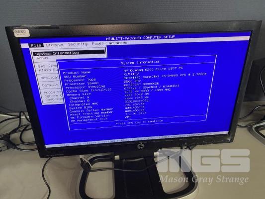 DESKTOP PC, HP COMPAQ 8200 ELITE USDT, CORE i5 2400S (2ND GEN) @ 2.5GHz, 4GB DDR3 RAM, NO HDD, KEYBOARD, MOUSE & POWER SUPPLY WITH HP COMPAQ LE2002x 20" LCD WIDESCREEN MONITOR ON INTEGRATED STAND S/N:AUD14907P6