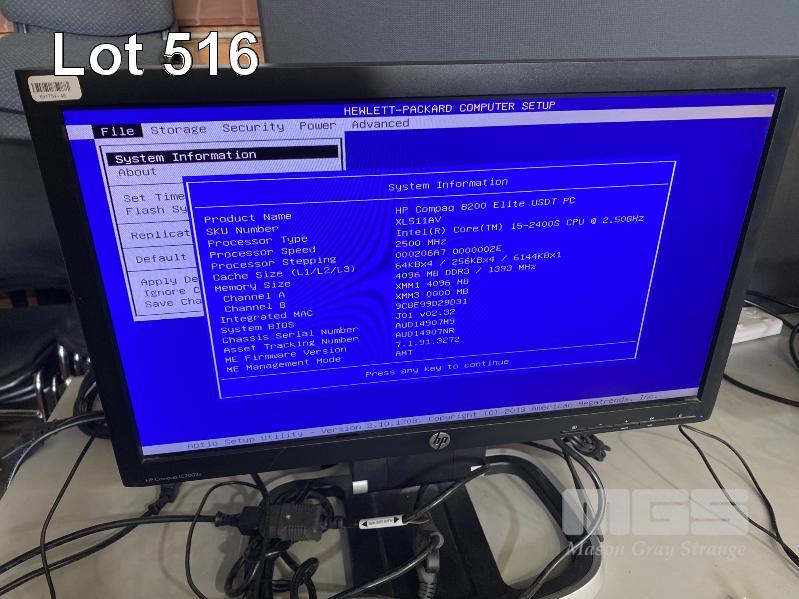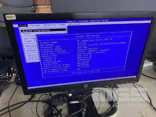DESKTOP PC, HP COMPAQ 8200 ELITE USDT, CORE i5 2400S (2ND GEN) @ 2.5GHz, 4GB DDR3 RAM, NO HDD, KEYBOARD, MOUSE & POWER SUPPLY WITH HP COMPAQ LE2002x 20" LCD WIDESCREEN MONITOR ON INTEGRATED STAND S/N:AUD14907M9
