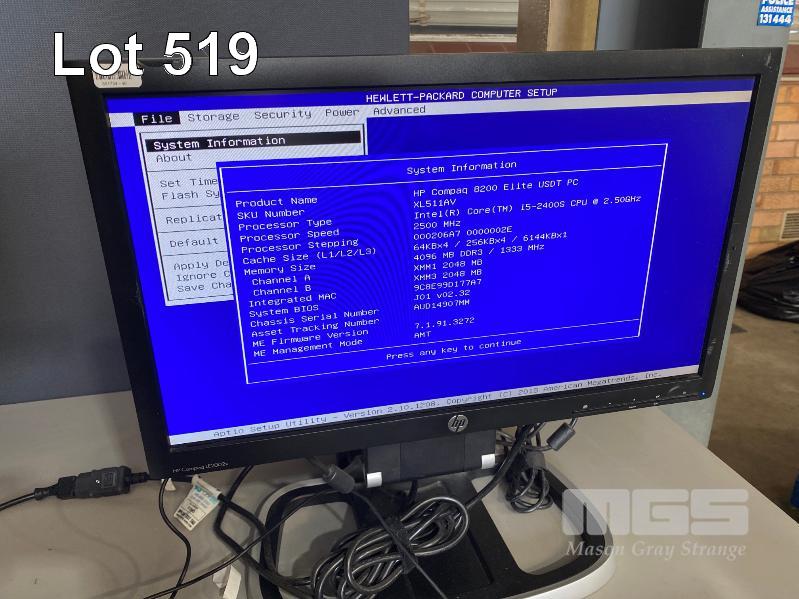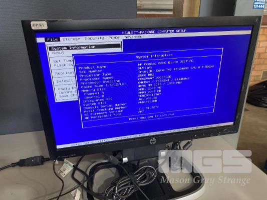 DESKTOP PC, HP COMPAQ 8200 ELITE USDT, CORE i5 2400S (2ND GEN) @ 2.5GHz, 4GB DDR3 RAM, NO HDD, KEYBOARD, MOUSE & POWER SUPPLY WITH HP COMPAQ LE2002x 20" LCD WIDESCREEN MONITOR ON INTEGRATED STAND S/N:AUD14907MM