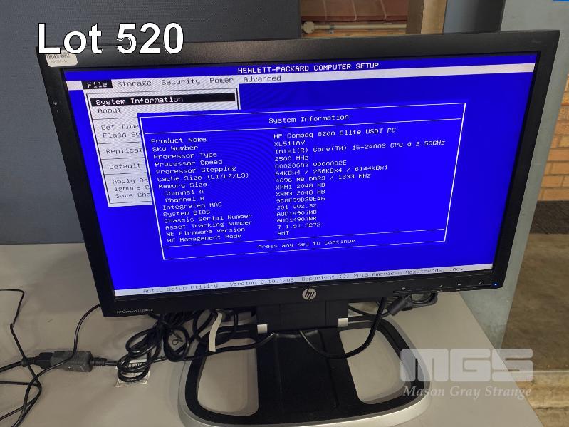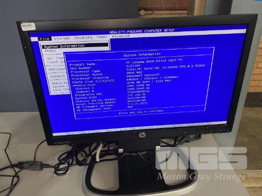 DESKTOP PC, HP COMPAQ 8200 ELITE USDT, CORE i5 2400S (2ND GEN) @ 2.5GHz, 4GB DDR3 RAM, NO HDD, KEYBOARD, MOUSE & POWER SUPPLY WITH HP COMPAQ LE2002x 20" LCD WIDESCREEN MONITOR ON INTEGRATED STAND (NOTE: SCRATCHES ON SCREEN) S/N:AUD14907MB