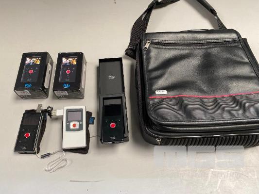 3 x CISCO FLIP MINI HD VIDEO CAMERAS, M3160 1 x CISCO FLIP MINI HD VIDEO CAMERA, M3120 1 x FLIP VIDEO ULTRA MINI CAMERA, F260W WITH 1 x BAG