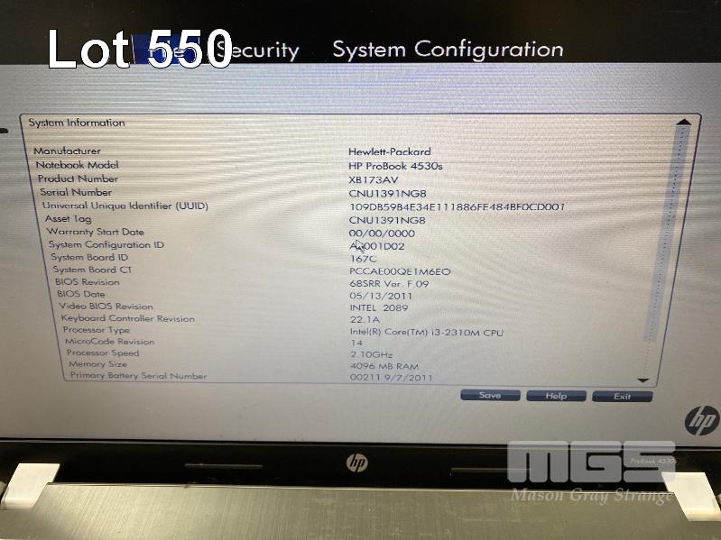LAPTOP, HP PROBOOK 4530s (XB173AV), CORE i3 2310M (2ND GEN) @ 2.1GHz, 4GB DDR3 RAM, 250GB SATA HDD, DVD-RW, 15.6" WIDESCREEN (1366x768) & POWER SUPPLY (NOTE: LINE ON SCREEN, F8 KEY MISSING) S/N:CNU1391NG8