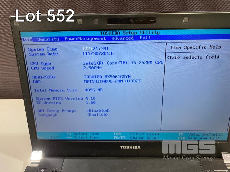 LAPTOP, TOSHIBA PORTEGE R830 (PT321A-01K00201), CORE i5 2520M (2ND GEN) @ 2.5GHz, 4GB DDR3 RAM, 500GB SATA HDD, DVD-RW, 13.3" WIDESCREEN (1366x768), INTEL HD VIDEO, Wi-Fi, BLUETOOTH, WINDOWS 7 PRO INSTALLED W/ LICENSE & POWER SUPPLY S/N:5C119941H