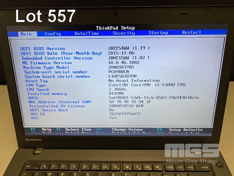 LAPTOP, LENOVO THINKPAD T450 (20BUS03705), CORE i5 5300U (5TH GEN) @ 2.3GHz, 8GB DDR3 RAM, 500GB SATA HDD, 14" WIDESCREEN (1366x768), INTEL HD VIDEO, Wi-Fi, BLUETOOTH, WINDOWS 10 PRO INSTALLED & POWER SUPPLY (NOTE: SCREEN BLEMISHES, TOUCHPAD WORN) S/N:PC09BDCN