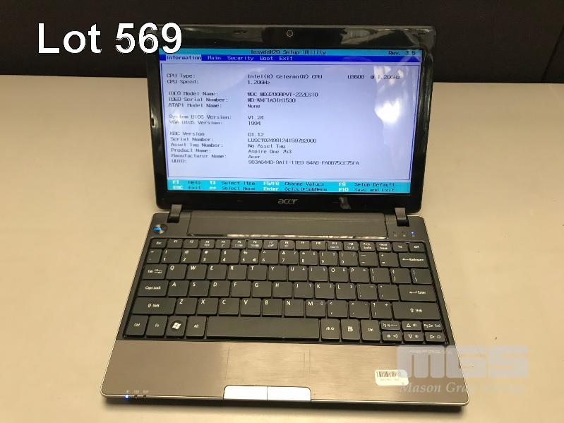 5 x NETBOOKS, ACER ASPIRE ONE 753, CELERON U3600 @ 1.2GHz, 2GB RAM, 320GB SATA HDD, 11.6" WIDESCREEN (NOTE: WITH 2 x POWER SUPPLIES, 1 x NETBOOK MISSING ARROW KEY)