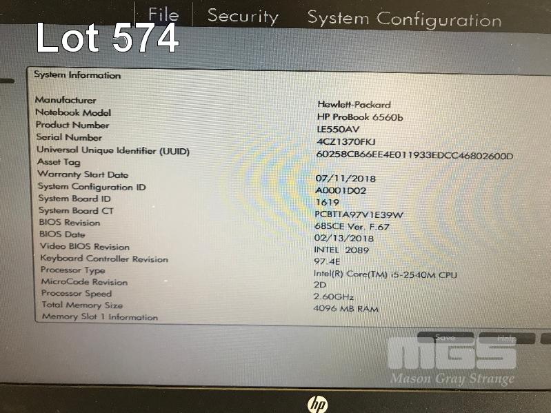 LAPTOP, HP PROBOOK 6560b (LE550AV), CORE i5 2540M (2ND GEN) @ 2.6GHz, 4GB DDR3 RAM, 250GB SATA HDD, DVD-RW, 15.6" WIDESCREEN (1366x768), INTEL HD VIDEO, Wi-Fi, BLUETOOTH, WINDOWS 7 PRO INSTALLED W/ LICENSE & POWER SUPPLY S/N:4CZ1370FKJ