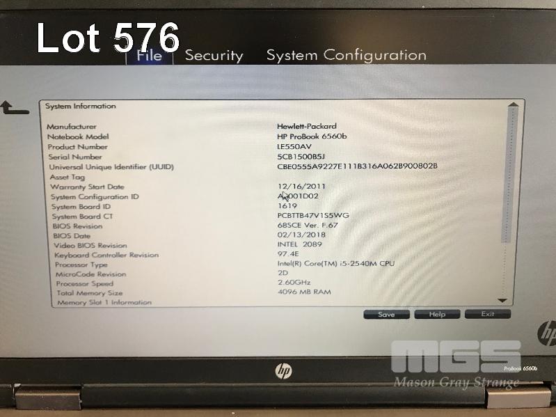 LAPTOP, HP PROBOOK 6560b (LE550AV), CORE i5 2540M (2ND GEN) @ 2.6GHz, 4GB DDR3 RAM, 250GB SATA HDD, DVD-RW, 15.6" WIDESCREEN (1366x768), INTEL HD VIDEO, Wi-Fi, BLUETOOTH, WINDOWS 7 PRO INSTALLED W/ LICENSE & POWER SUPPLY S/N:5CB1500B5J