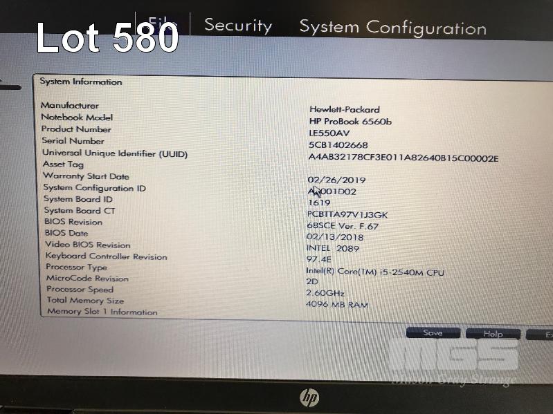 LAPTOP, HP PROBOOK 6560b (LE550AV), CORE i5 2540M (2ND GEN) @ 2.6GHz, 4GB DDR3 RAM, 250GB SATA HDD, DVD-RW, 15.6" WIDESCREEN (1366x768), INTEL HD VIDEO, Wi-Fi, BLUETOOTH, WINDOWS 7 PRO INSTALLED W/ LICENSE & POWER SUPPLY S/N:5CB1402668