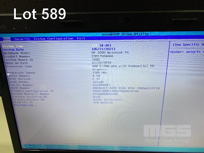 LAPTOP, HP 2000-2d19WM, AMD E-300 APU WITH RADEON HD GAPRHICS @ 1.3GHz, 4GB DDR3 RAM, 250GB SATA HDD, DVD-RW, 15.6" WIDESCREEN, WINDOWS 10 HOME INSTALLED & POWER SUPPLY (NOTE: MISSING LEFT MOUSE BUTTON) S/N:5CG34905FL
