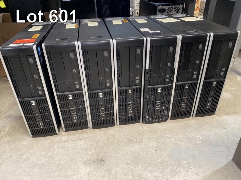 7 x DESKTOP PCS INC. 6 x HP COMPAQ 8100 ELITE SFF, CORE i5 650 @ 3.2GHz, 4GB DDR3 RAM, 160GB SATA HDD, DVD-RW, WINDOWS 7 PRO INSTALLED W/ LICENSE 1 x HP COMPAQ 8000 ELITE SFF, CORE 2 DUO E8400 @ 3GHz, 4GB DDR3 RAM, 250GB SATA HD (NO KEYBOARD, NO MOUSE, NO CABLES)