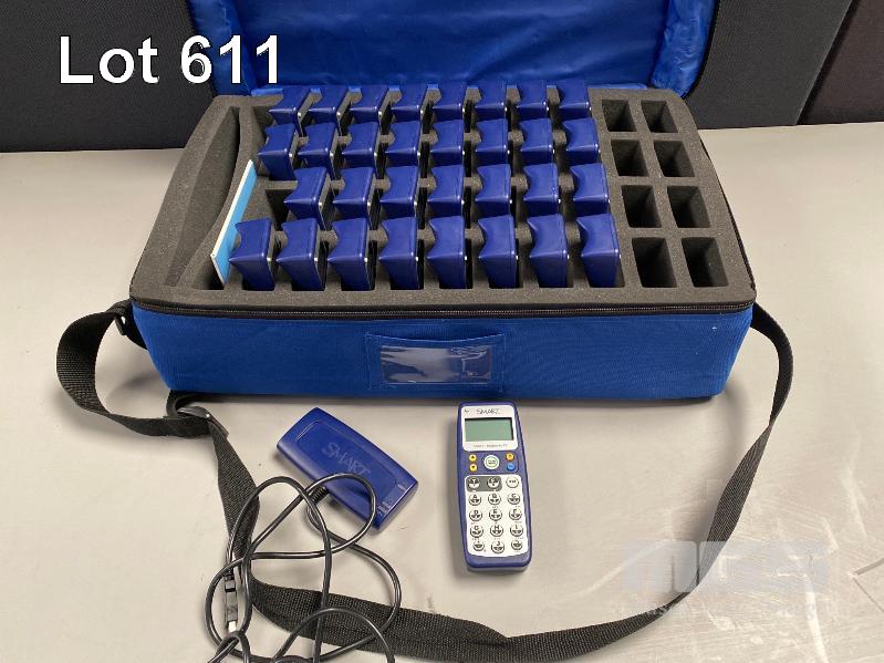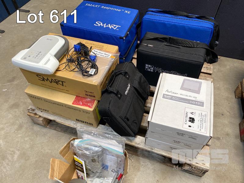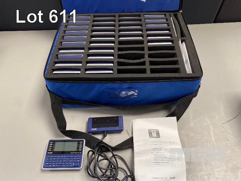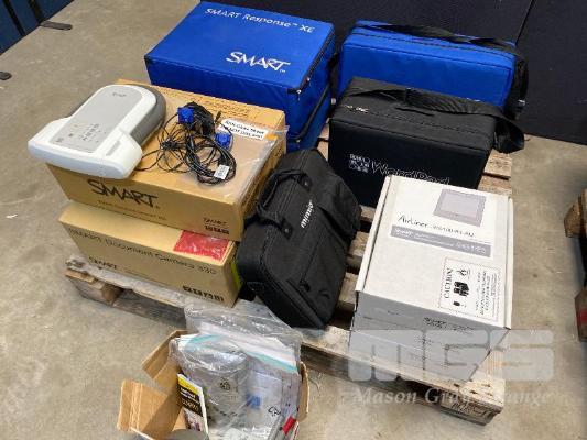 LARGE QTY ASST SMART BOARD ACCESSORIES INC. 32 x WORDPAD 2 STUDENT RESPONSE HANDSETS IN BAG, 62 x SMART RESPONSE XE HANDHELD STUDENT RESPONSE DEVICES WITH 2 x BAGS, 32 x SMART RESPONSE PE HANDHELD STUDENT RESPONSE DEVICES IN BAG, 1 x SMART DOCUMENT CAMERA 450, 1 x SMART DOCUMENT CAMERA 330, 3 x SMART AIRLINER WS100 WIRELESS SLATE UNITS WITH 1 x POWER SUPPLY, 1 x MIMIO INTERACTIVE WHITEBOARD CAPTURE KIT IN BAG, 2 x SMART REMOTES, ASST MANUALS ETC