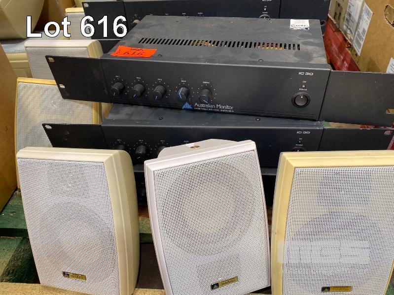 12 x AUSTRALIAN MONITOR IC30 AMPLIFIERS & QTY ASST SPEAKERS