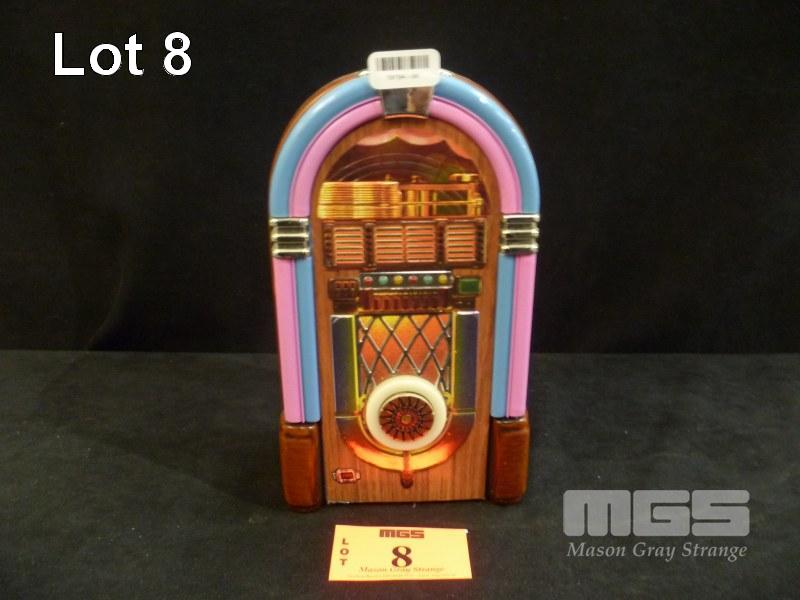 JIM BEAM DECANTER FULL OF JIM BEAM WHISKEY, 1950 JUKEBOX (CERAMIC)