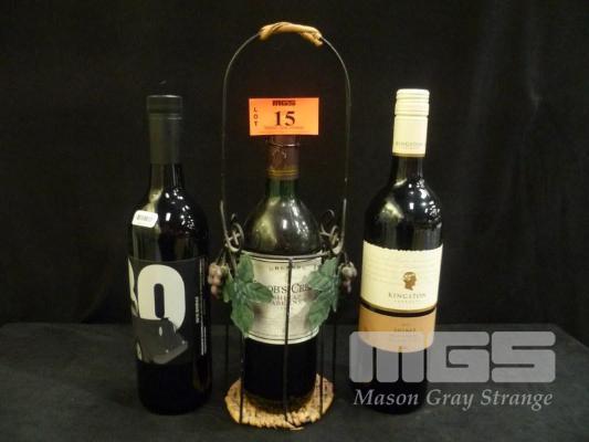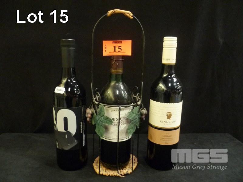 3 x BOTTLES WINE, JACOBS CREEK SHIRAZ CERBENT 1996, 2013 SHIRAZ KINGSTON ESTATE & VARIETY BASH 80 2016 SHIRAZ