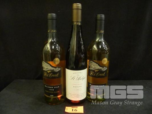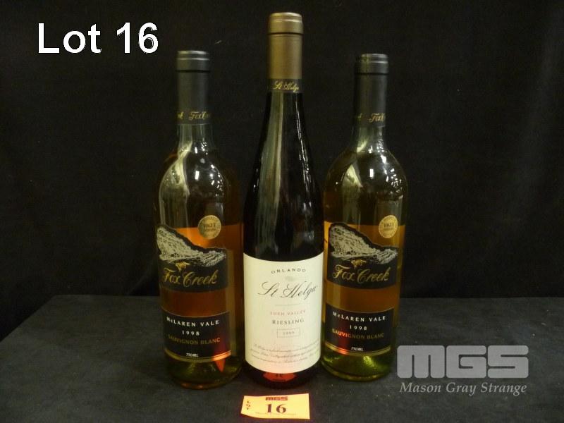 3 X BOTTLES OF WHITE WINE, INC; 2 X 1998, SAUVIGNON BLANC, FOX CREEK, McLAREN VALE 1 X 1999, RIESLING, ORLANDO, ST HELGA, EDEN VALLEY