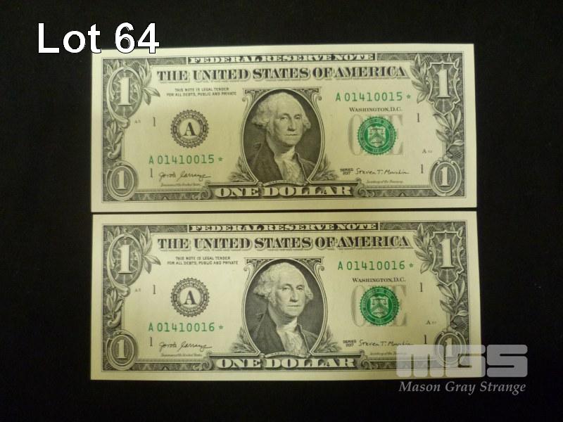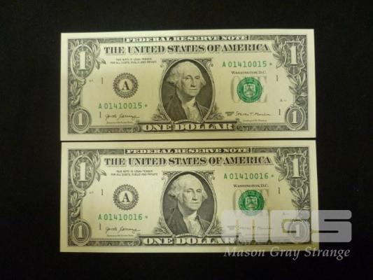 2007 2 x 1 USA DOLLAR STAR NOTES CONSECUTIVE UNC