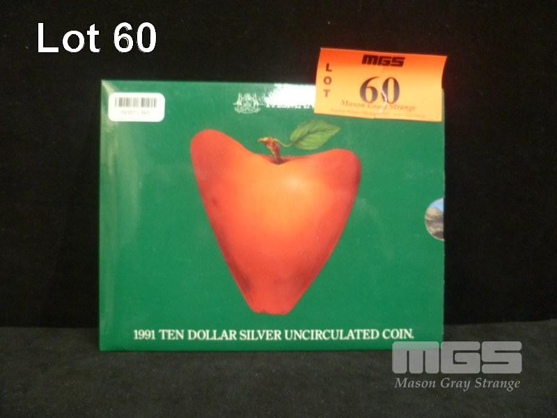 1991 $10 DOLLAR FINE SILVER STATES SERIES UNC COIN TASMANIA