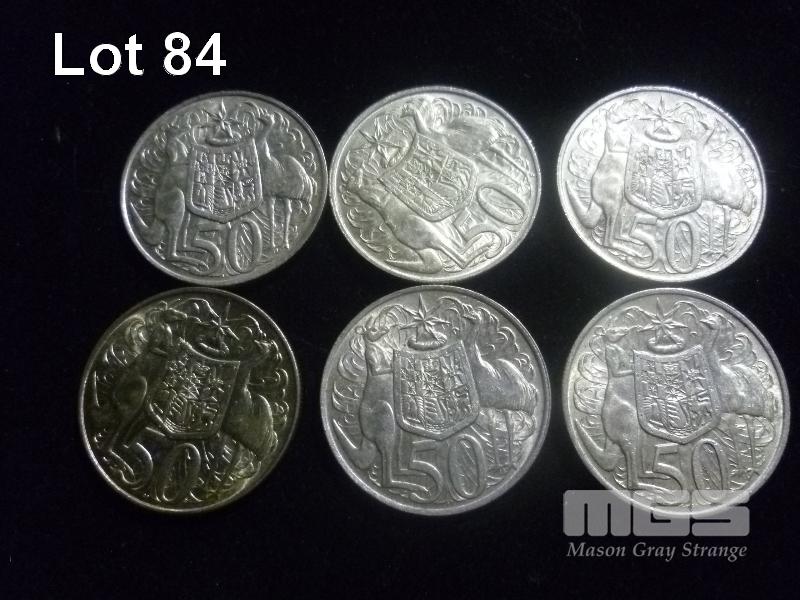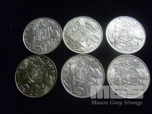 6 X 1966 AUSTRALIAN ROUND 50 CENT PIECES