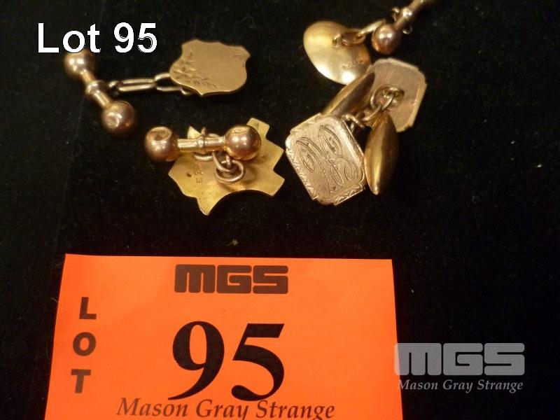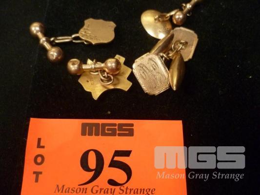 3 X NON MATCHING GOLD CUFF LINKS MARKED 9CT, 8 GRAMS