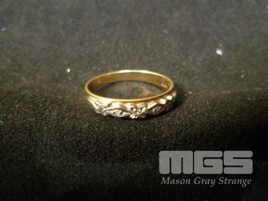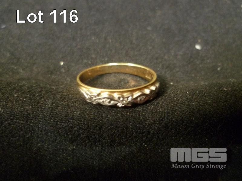 GOLD RING, SET WITH SMALL CLEAR STONES, MARKED 18K, SIZE 6.5, 2.52 grams