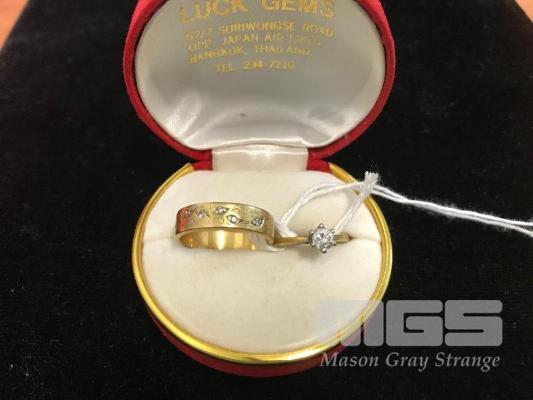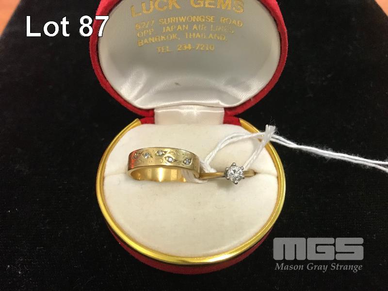 2 X GOLD RINGS MARKED 18CT & 750, 1 X SET WITH DIAMOND SIZE 6, 1 X DIAMOND CHIPS SIZE 6 (US) 6.55 GRAMS TOTAL
