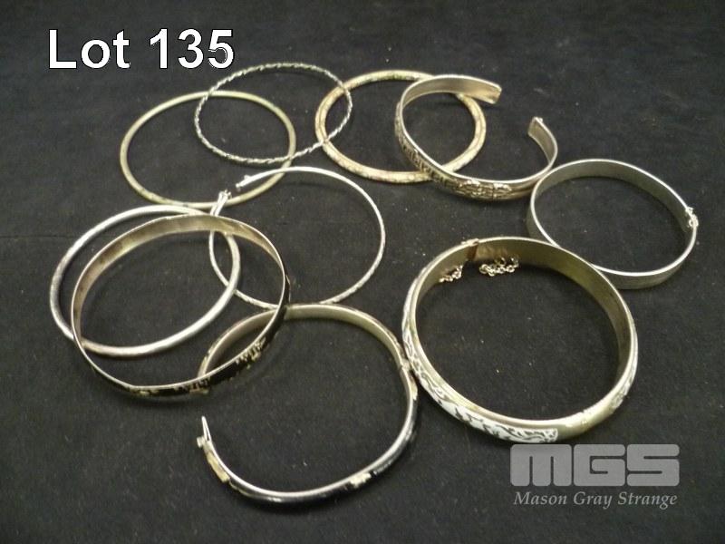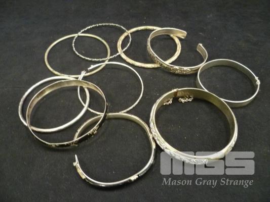 10 X BANGLES MARKED STERLING SILVER, UNMARKED OR HALL MARKS TO FAINT TO READ