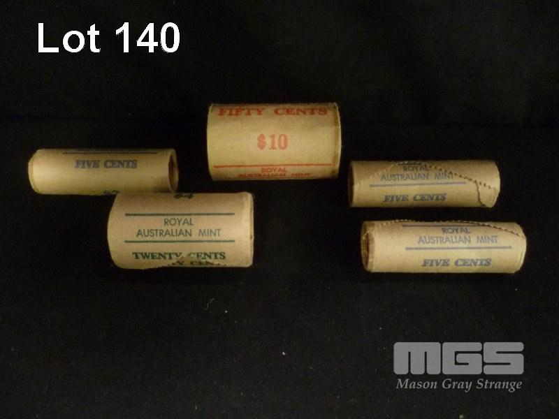 4 X ROYAL AUSTRALIAN MINT, BANK ROLLS, INC; 3 X 5c, 1 X 20c, 1 X 50c
