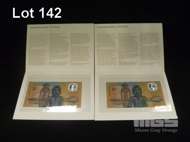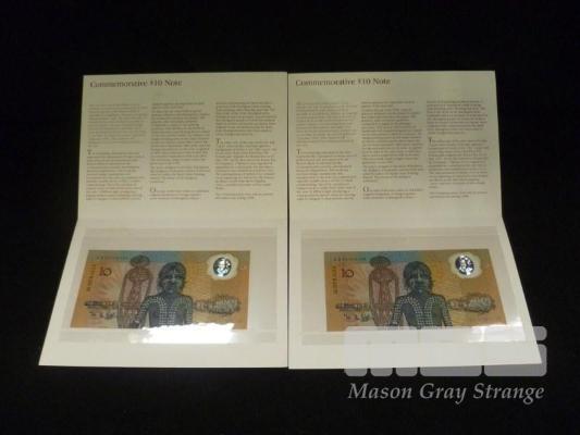 1988 2 x $10.00 NOTE COMMEMORATIVE CONSECUTIVE IN FOLDER UNC