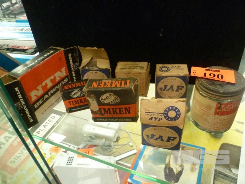 VINTAGE NEW OLD STOCK BEARING & SEAL SPARE PARTS IN BOXES INC JAF, TIMKEN, NTN & LOCQUIC BOTTLE