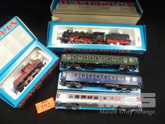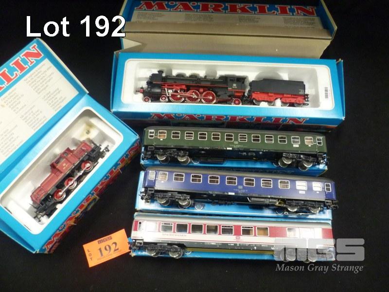 2 x HO SCALE MODEL MARKLIN LOCOMOTIVES & 3 x CARRIAGES