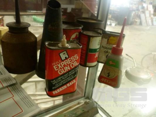 ASSORTED GREASE TINS, OIL TINS, CALTEX, SHELL, ETC