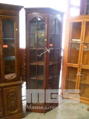 MAHOGANY STAINED GLASS FRONTED CORNER DISPLAY CABINET, 2 DOOR