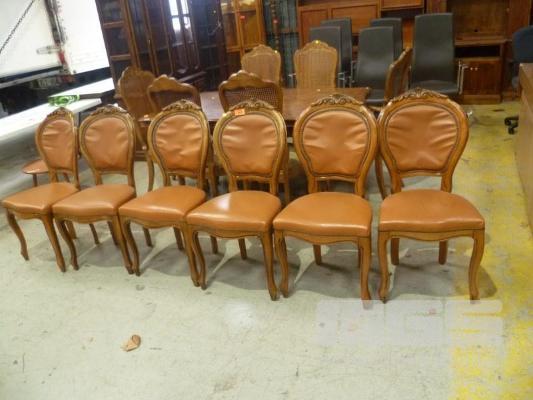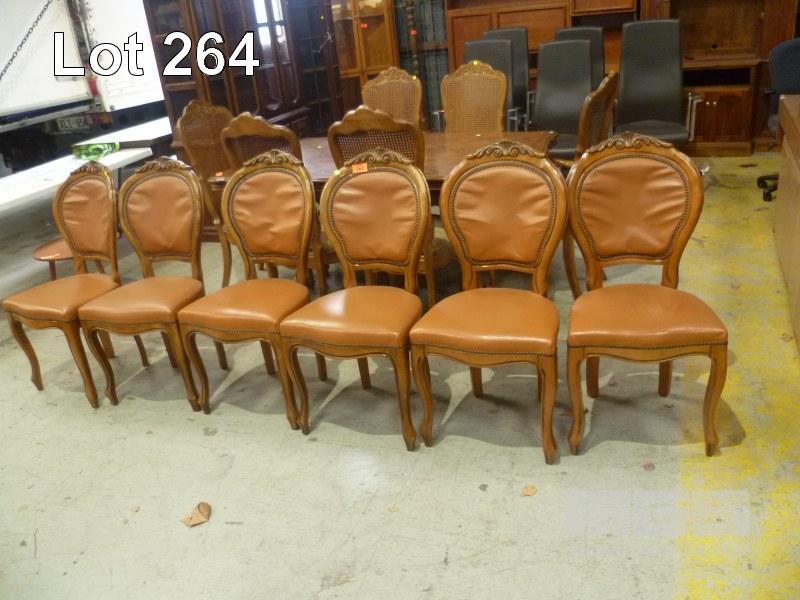 SET OF 6 BROWN LEATHER UPHOLSTERED CARVED TIMBER FRAMED DINING CHAIRS