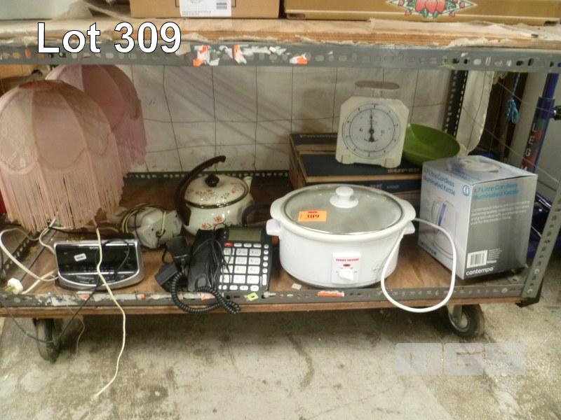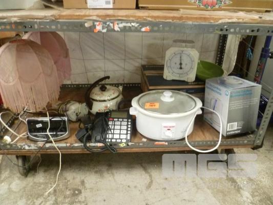 PANASONIC VCR, PAIR TABLE LAMPS, TELEPHONES, SLOW COOKER, KETTLE, ETC