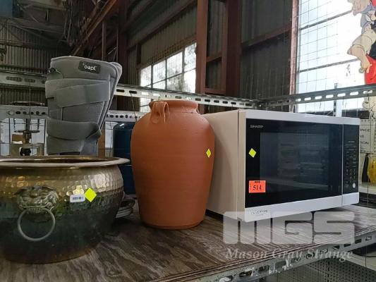 SHARP INVERTER SENSOR MICROWAVE, OAPL MOON BOOT, BRASS POT & CLAY VASE