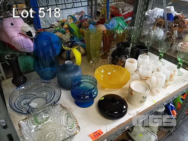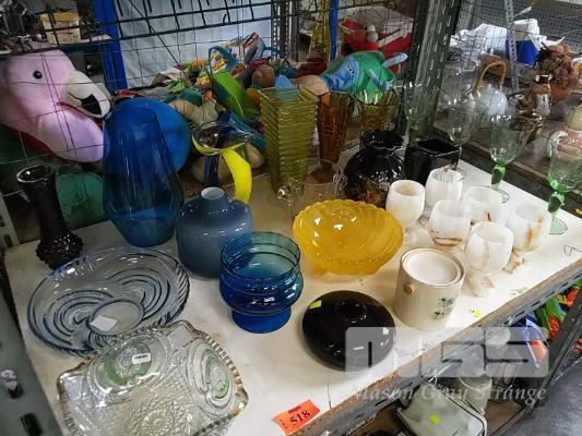 ASSORTED ART GLASS VASES, BOWLS, GLASSES, ETC