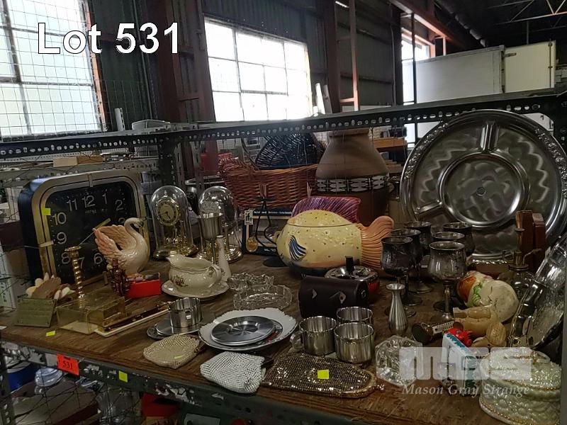 2 x DOME CLOCKS, EPNS GOBLETS, GLOMESH PURSES, ASHTRAYS, ORNAMENTS, ETC