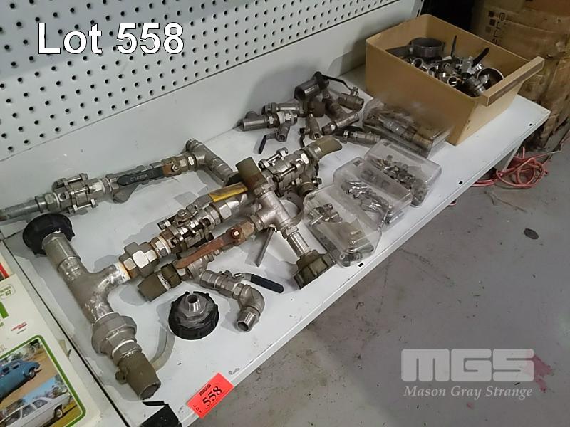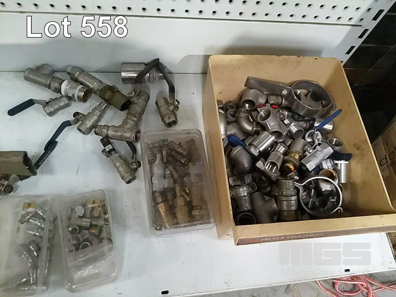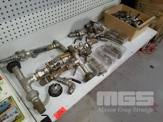 ASSORTED BRASS PIPE FITTINGS & TAPS, 1 x SHELF
