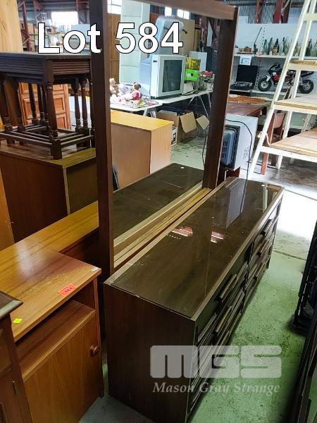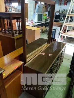 TIMBER VENEER CHEST DRESSER, 6 x DRAWER WITH DOUBLE BED SIZE BEDHEAD