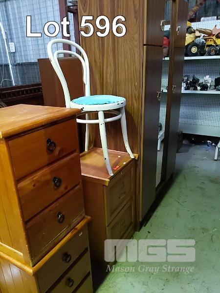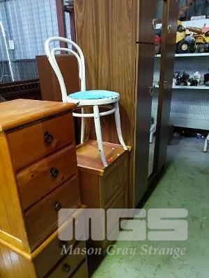 TIMBER LAMINATE WARDROBE,PINE 2 DRAWER FILING CABINET & TIMBER CHAIR