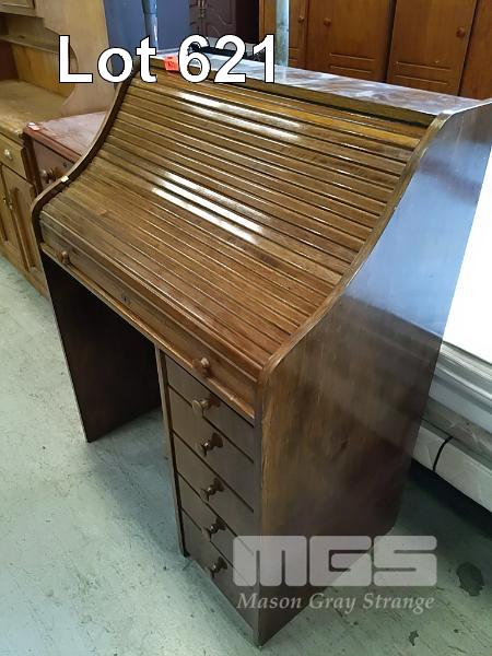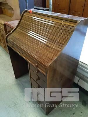 WRITING BUREAU, ROLL TOP, 5 DRAWERS (LOCKED, NO KEY)