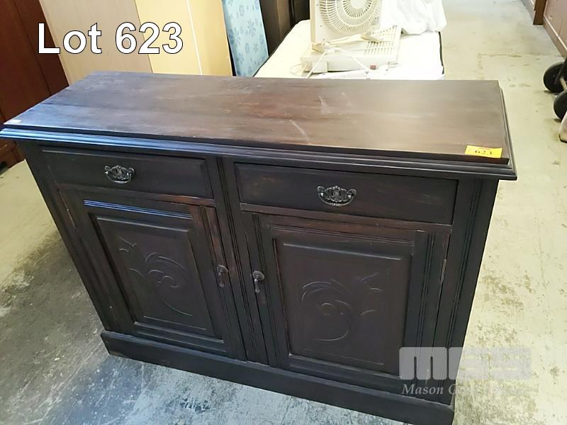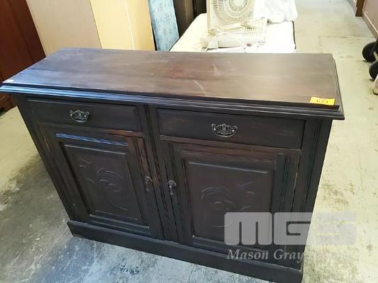 DARK TIMBER VENEER SIDEBOARD, 2 DOOR/DRAWER