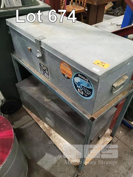 2 x GALV TOOL BOXES, 77cm (W) ON TROLLEY STAND