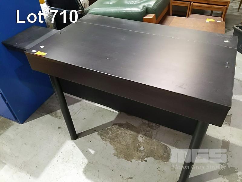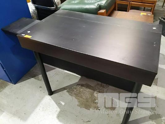 TIMBER LAMINATE PC DESK, TILT TOP WITH BLUE METAL 4 DRAWER FILING CABINET