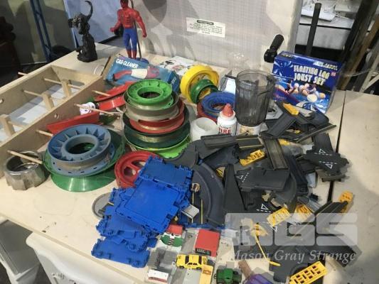 ASSORTED FISHING HAND REELS, KIDS TOYS ETC 1 X TABLE